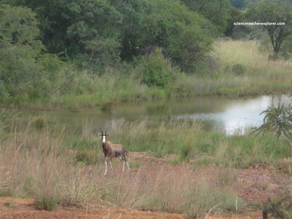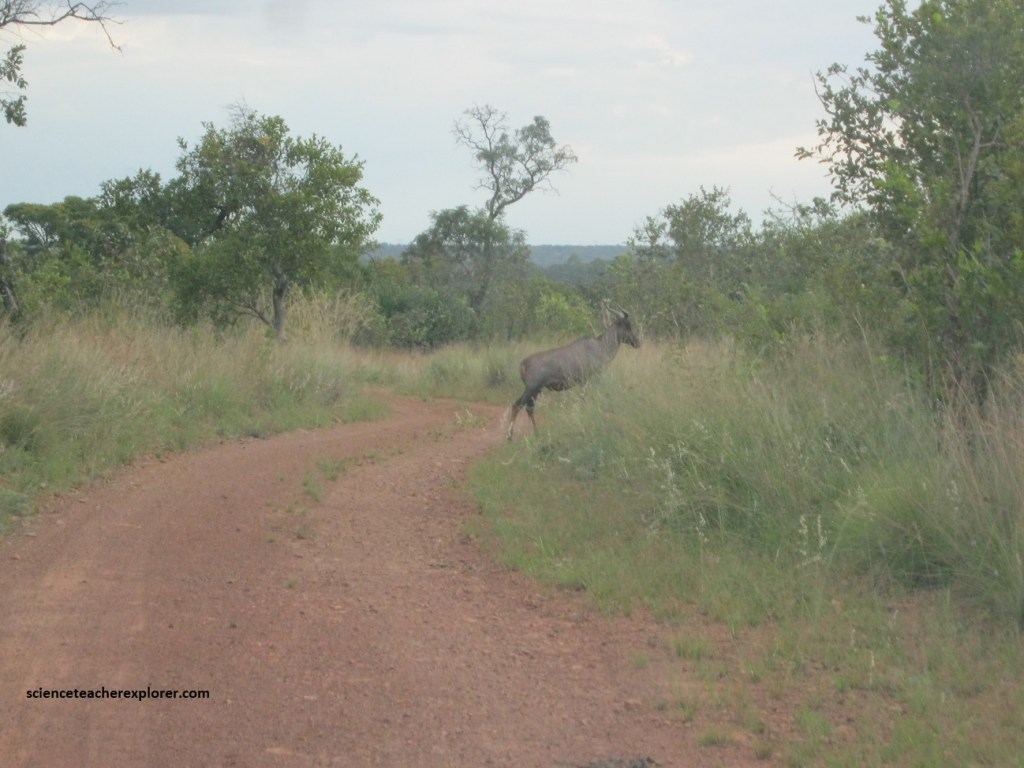 Pictured above, the Tsessebe, (Damalliscus lunatus) is dark, bluish-grey with black on the upper legs, shoulders and upper face. Horns are wid apart at the base and have characteristic “V” shape. They are grazers and prefer open areas with medium to tall tasty grass.