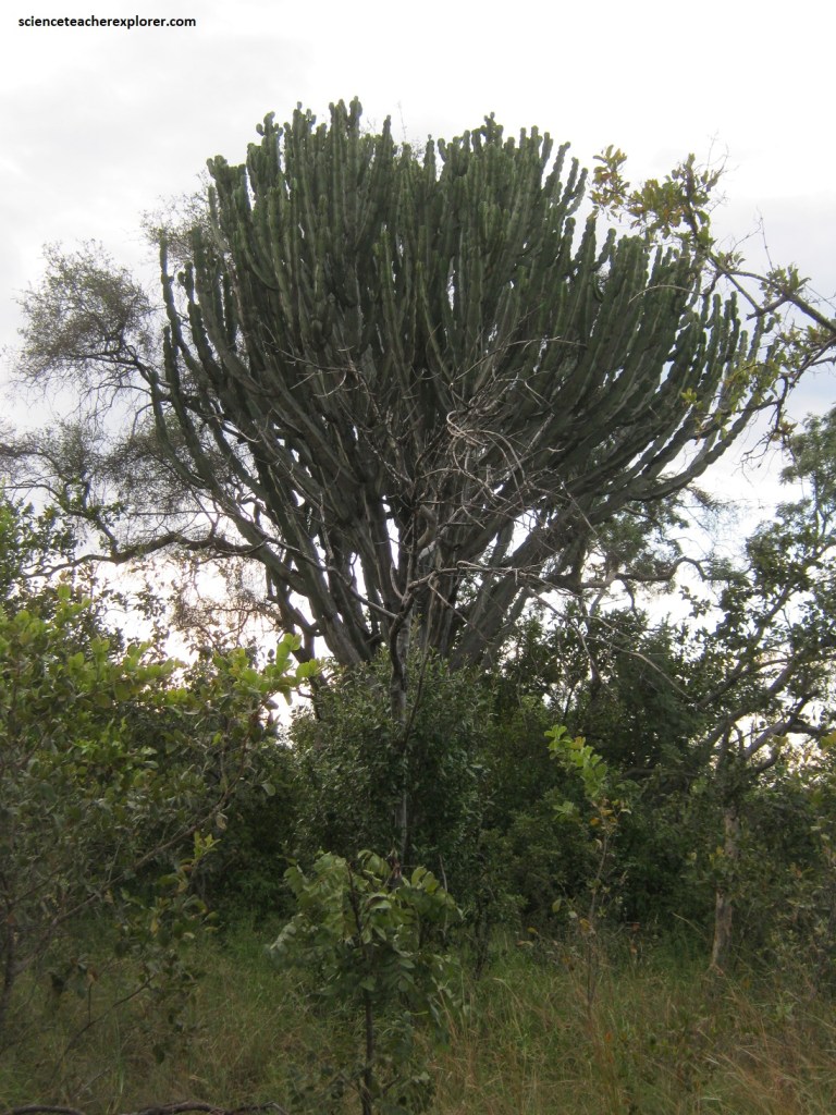 Picture above, Napoon or Euphorbia ingens means large, massive or enormous aptly describing the tree, which can reach roughly 12 m. Its stem is short and the massive crown is very dense. The bark was dark grey, slight rough and dented. Branches were four-sided with four ridges. They branch freely and are conspicuously articulated with about 100 mm in diameter between opposite ridges.