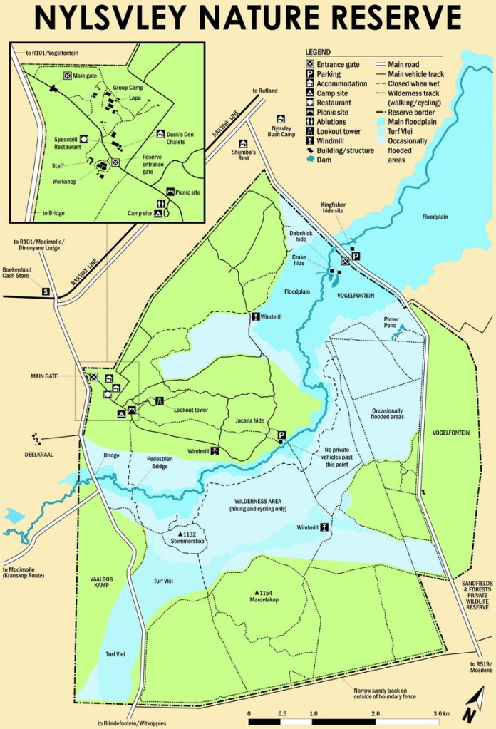 The Nylsvley Nature Reserve is situated in the upper reaches of the Nyl River near the town of Mookgophong (Naboomspruit) in the Limpopo Province, and includes part of the largest floodplain in South Africa.