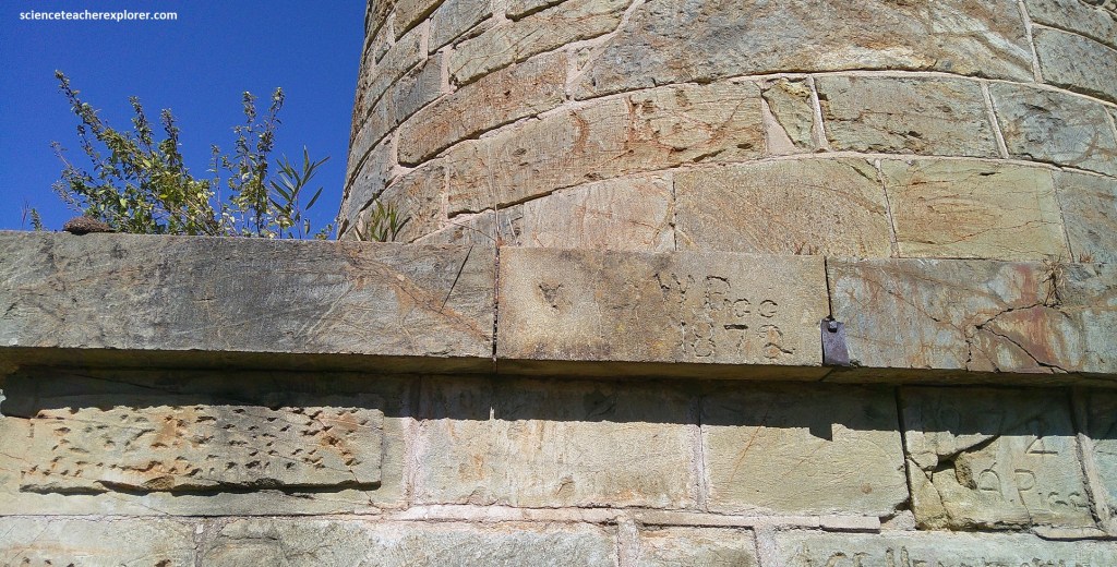 Pictured below, the wall of the chimney bore an assortment of engraved names. On the right is ‘W. Pigg 1872’; William Pigg, who arrived that year, was one of Edward Button’s mining partners.