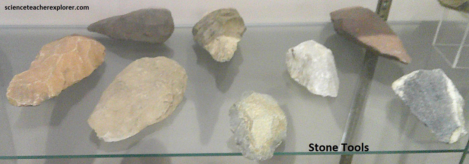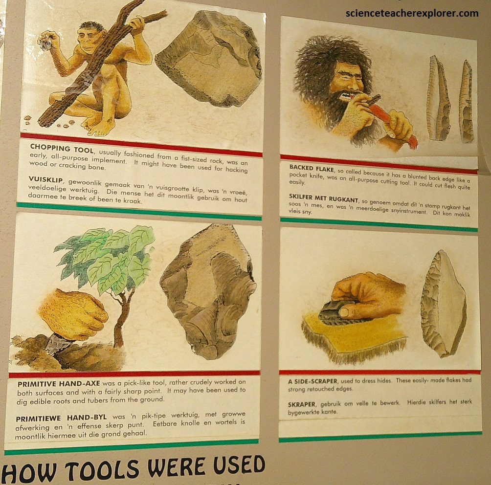 Evidence of habitation extending over many thousands of years was found in the valley in the form of fossil animals (including hominids) bone and stone tools, ancient hearths and iron smelting. {Iron and stone tools that are pictured below were displayed on-site, along with the interpretive sign}.