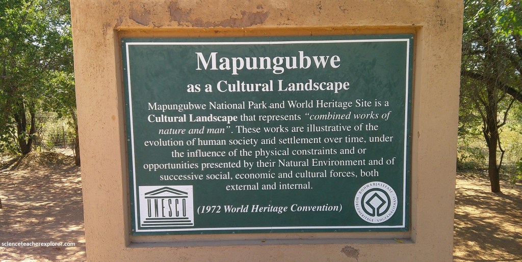 Our last leg of trekking in the Limpopo Province of South Africa was an “Allan Quatermain & the Lost City of Gold” kind of thing. It was in a National Park located in the far north of the Limpopo province, near the confluence of the Limpopo and Shashe Rivers where Botswana, South Africa and Zimbabwe meet. To get there we drove 70km west of Musina on R572. For countless generations, the local people had held the “Mapungubwe Hill” of this location in awe and reverence, and whatever secrets it held remained undisturbed. But there were rumors of a treasure! Then in 1933, a local teacher named Ernst Van Graan, explored the top of “Mapungubwe Hill” and discovered a prehistoric burial site with clay pottery, iron tools, glass & gold beads, a gold plate and human skeleton remains. The University of Pretoria was informed, then the government became involved, followed by intensive and ongoing meticulous archaeological exploration and research. It was declared a World Heritage Site in 2003 as the core of the Greater Mapungubwe Transfrontier Conservation Park. We visited the award-winning Mapungubwe Interpretation Center in 2025, (pictured below).