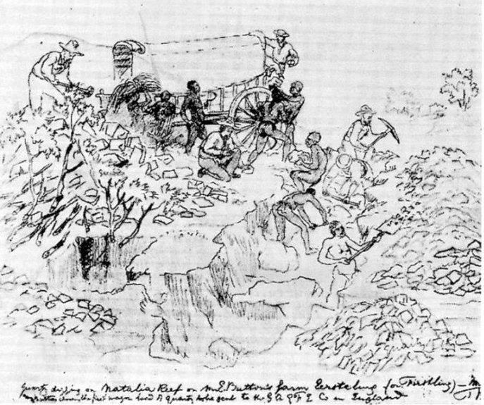 In September of 1871, Edward Button appeared before the Volksraad in Pretoria to announce the discovery of a profitable goldfield. In December of that year the Marabastad goldfield was proclaimed, the first in South Africa, and prospectors flooded in. Button called the discovery, ‘The Natalia Reef’.