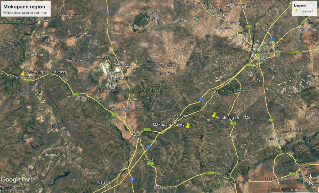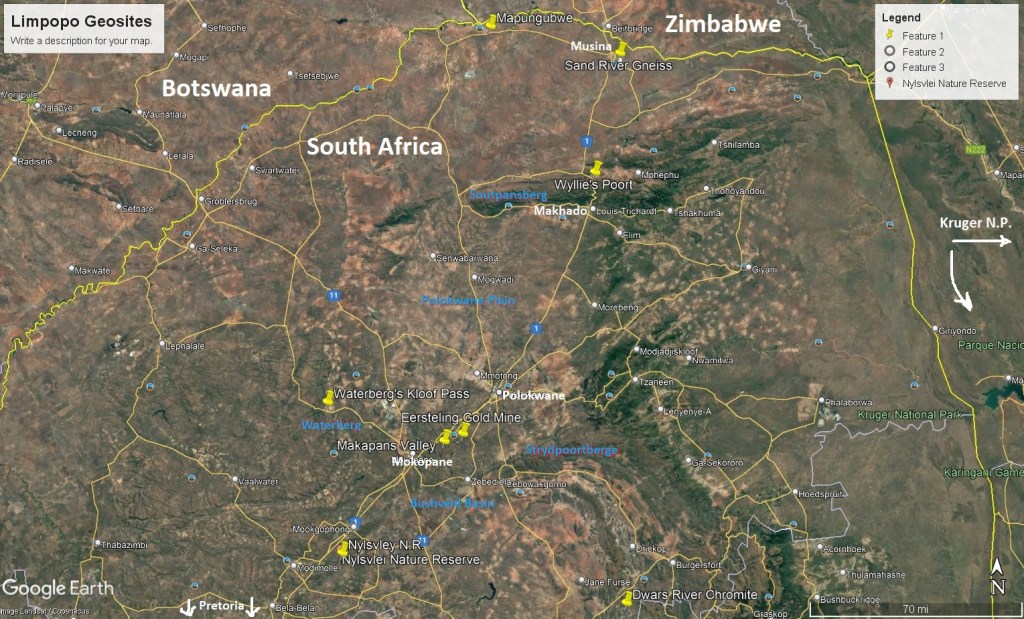 Limpopo is a province of South Africa. I had decided to trek the different Geosites of this province in 2023 & 2025. It is found in the northeastern part of South Africa & I had decided to approach the region from South Africa’s main highway of N1 from Pretoria. Limpopo is a region of considerable geological antiquity and variety, of diverse landscapes. These include the Limpopo Lowveld in the north, the elongated massif of the Soutpansberg, the Mining areas of the Waterberg Plateau in the west , and the outback of the Bushveld Basin .