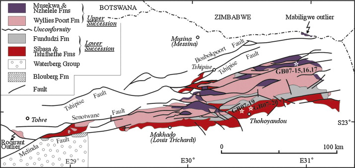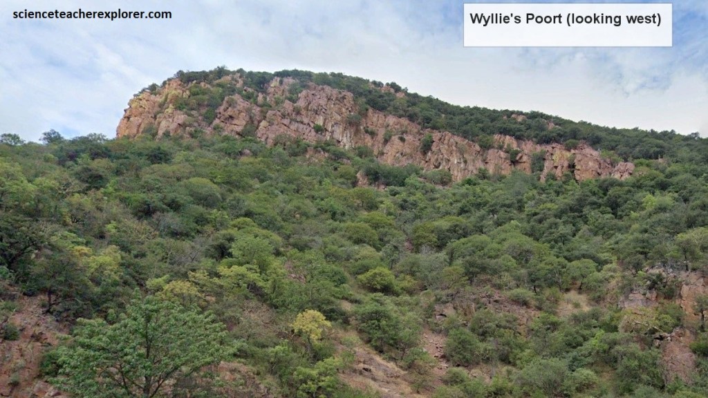 The Soutpansberg massif was formed in a large east-northeast-trending graben structure (a dropped-down block of land bordered by parallel normal faults), that became filled mostly by basaltic volcanics and sandstone, the latter becoming the hard Wyllie’s Poort quartzite. On both its southern and northern sides the Soutpansberg range is bounded by major fault structures against older granitic gneisses of the Limpopo Complex.