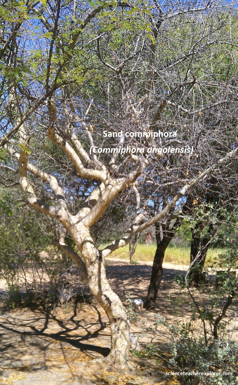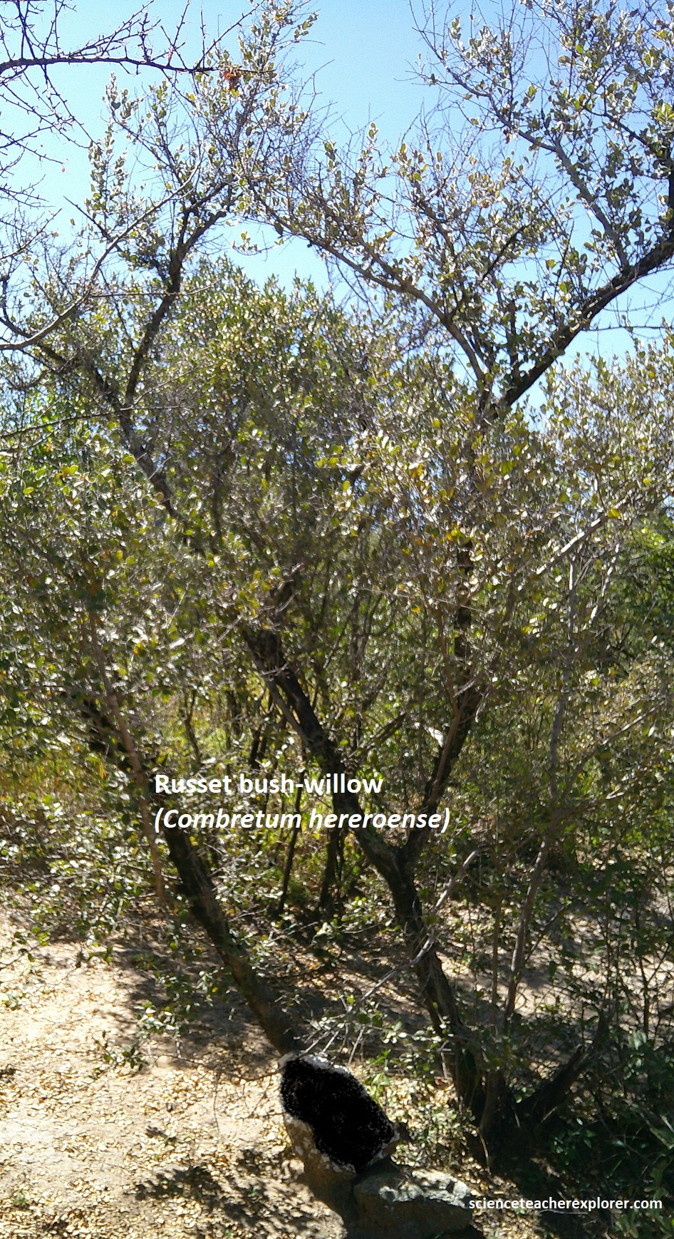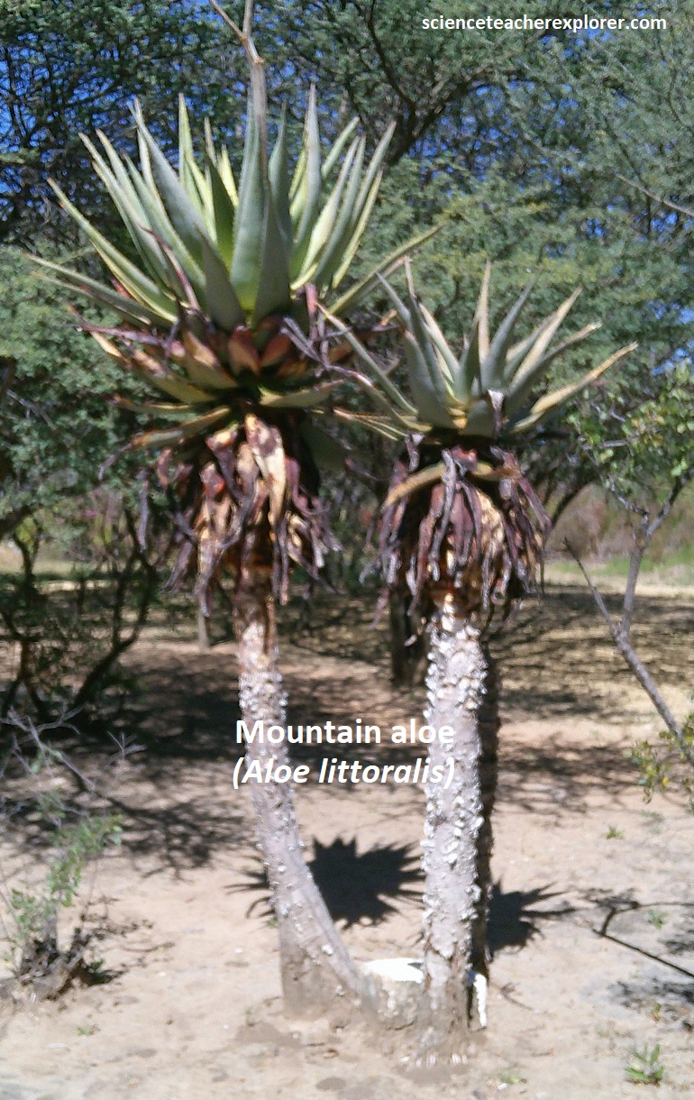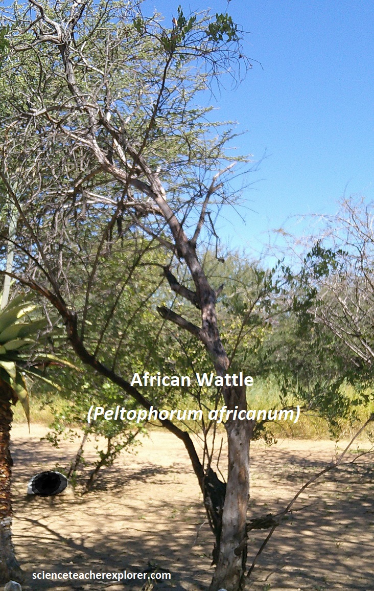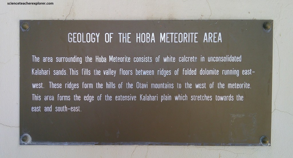 Our last Geo-site destination in the Otavi Mountainland area was the Hoba meteorite. We reached there by driving north on highway C42 from Grootfontein and turning left (east), on graveled road D2859. At the parking lot, we checked in with the National Monument fold and trekked to the meteorite. Along the way, I was able to identify some of the endemic trees on the path, (pictured below).