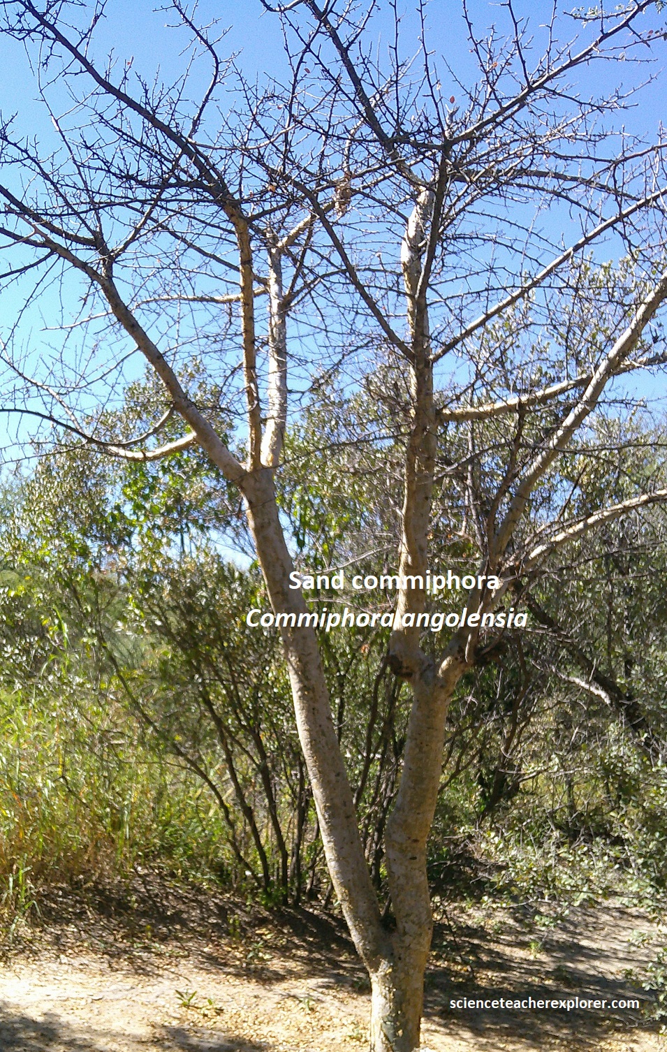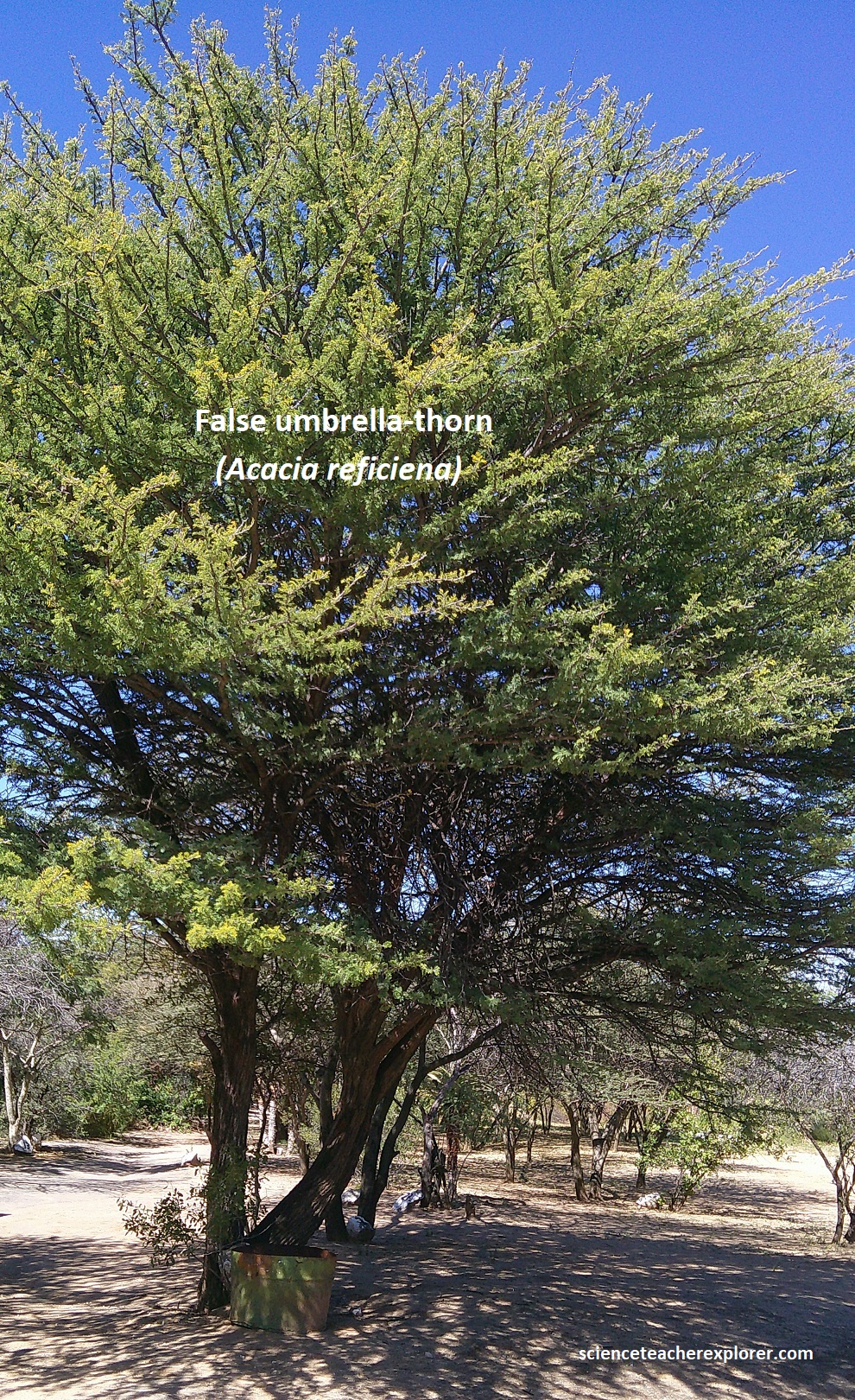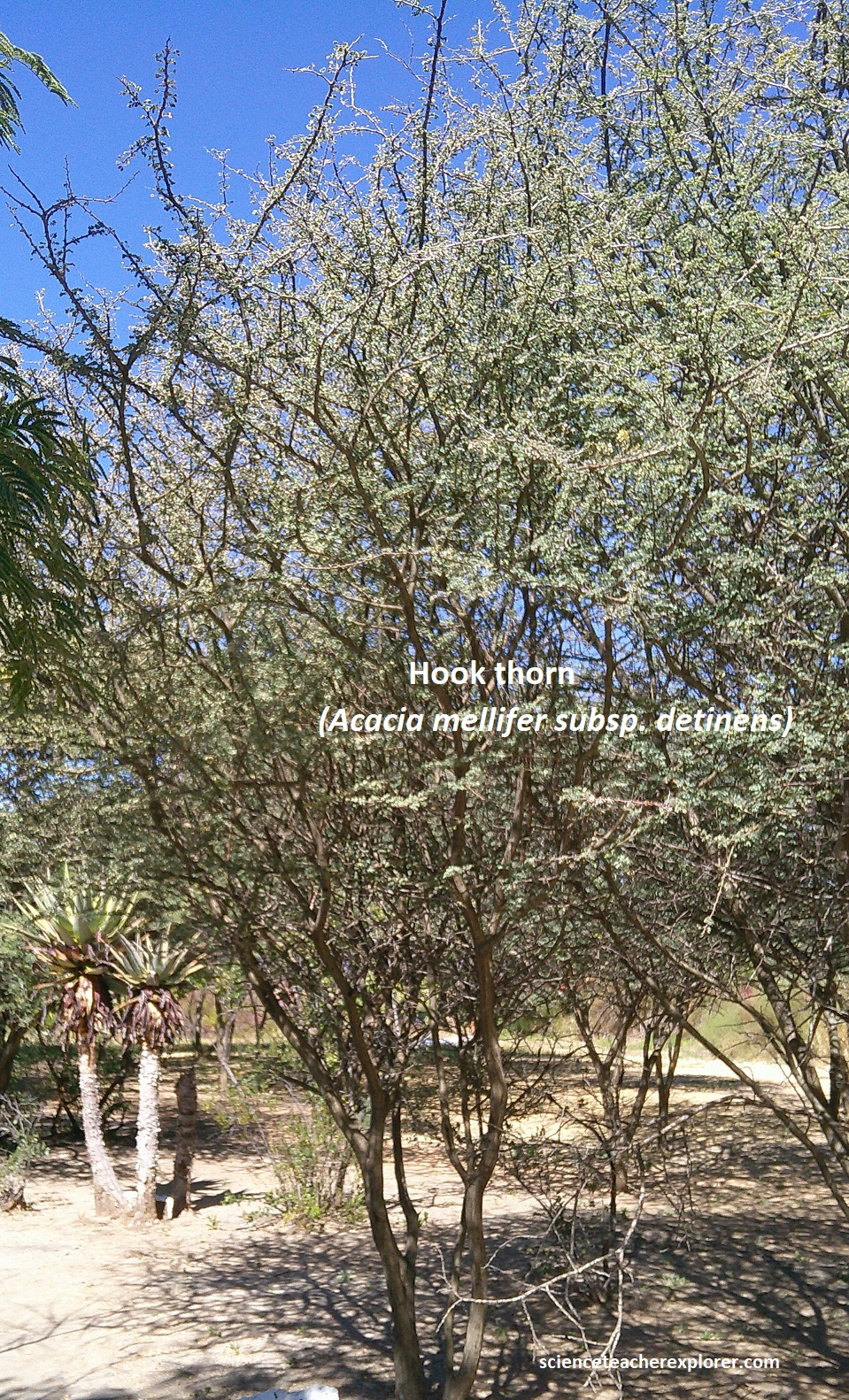 Our last Geo-site destination in the Otavi Mountainland area was the Hoba meteorite. We reached there by driving north on highway C42 from Grootfontein and turning left (east), on graveled road D2859. At the parking lot, we checked in with the National Monument fold and trekked to the meteorite. Along the way, I was able to identify some of the endemic trees on the path, (pictured below).