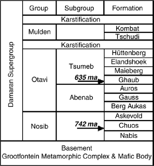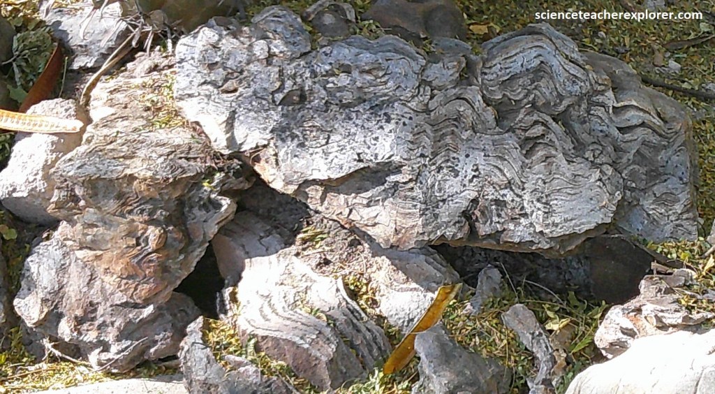 Along the Damara Belt, (which includes the Otavi Mtns.), fine clayey-sandy sediments were deposited in the deep regions of the the internal sea, while on the coastal shelf areas huge calcareous reefs were formed. However, these reefs were formed by the lime-secreting cyano-bacteria called stromatolites. These were of such huge dimensions and thickness that they contributed significantly to the formations of limestone at the end of the Precambrian period.