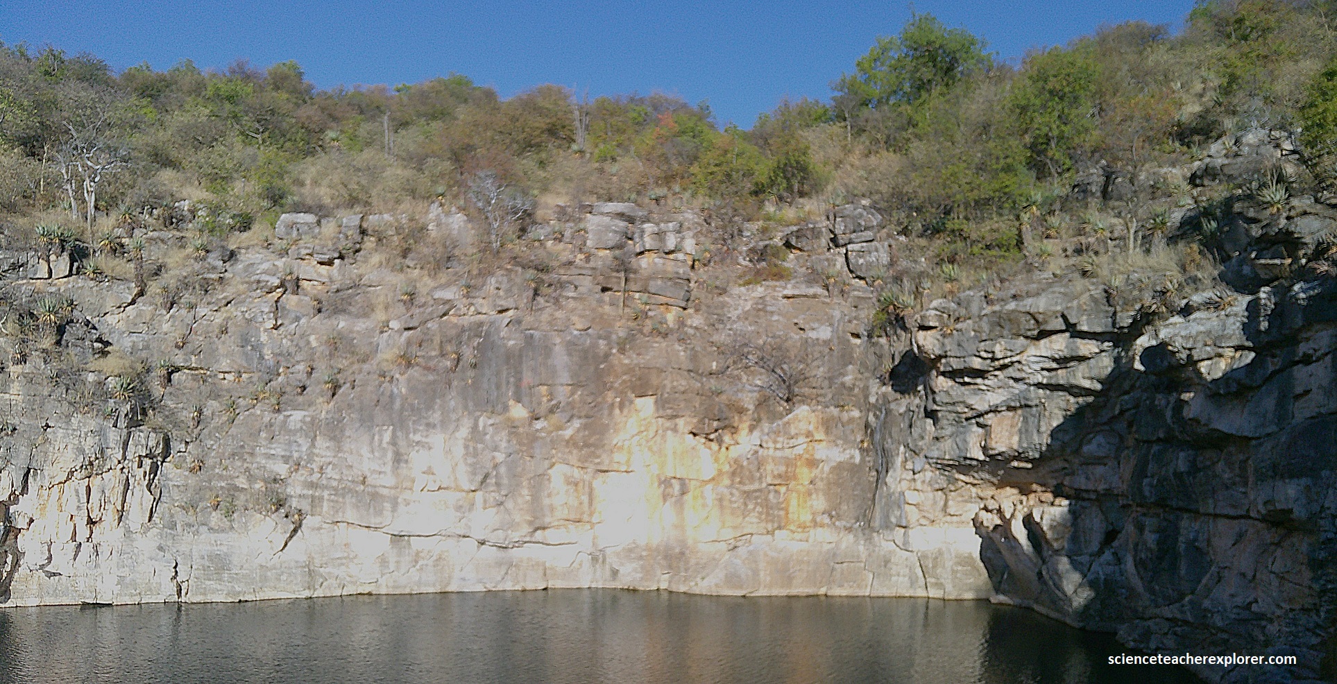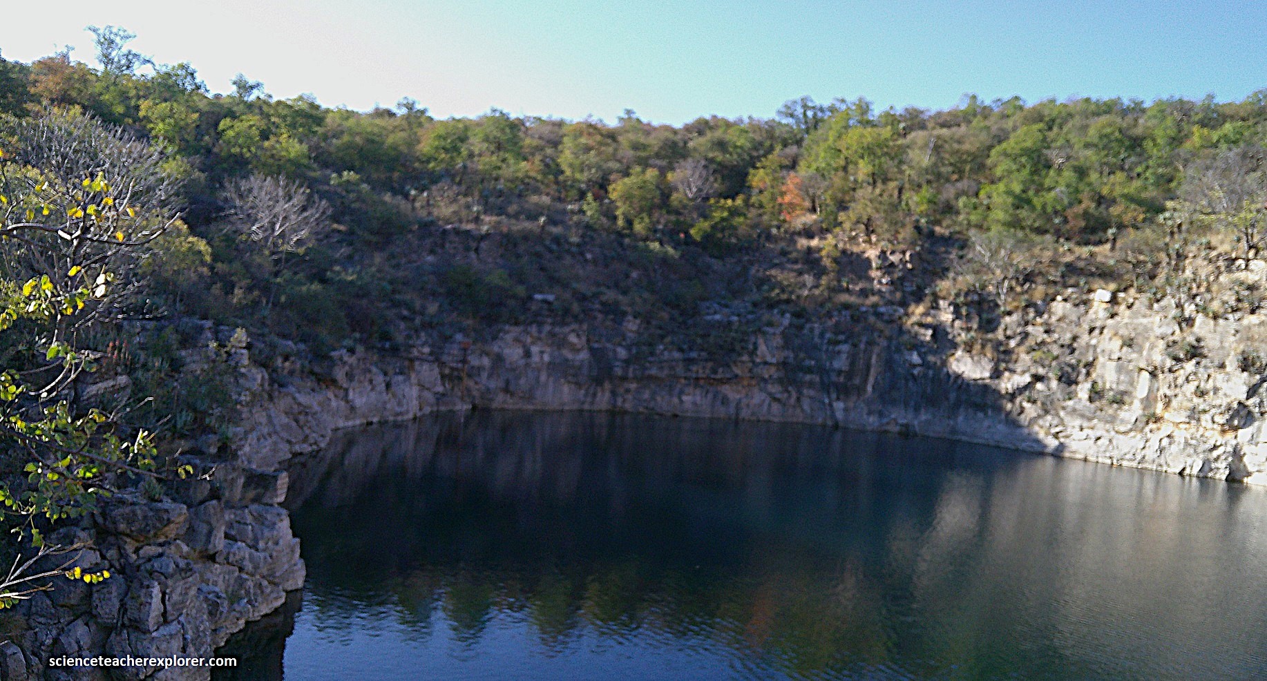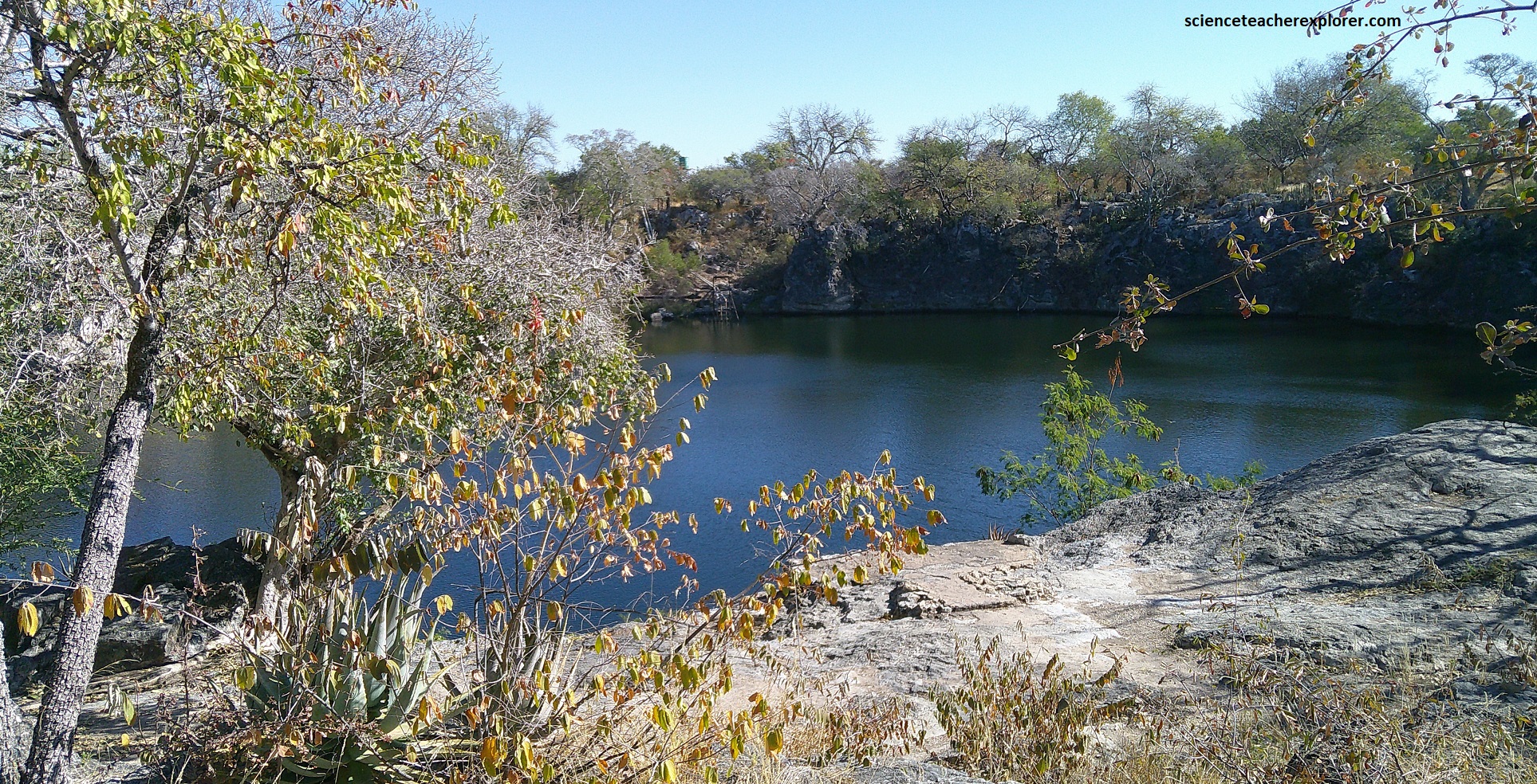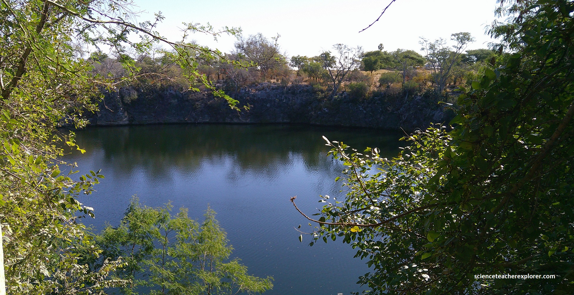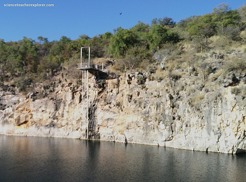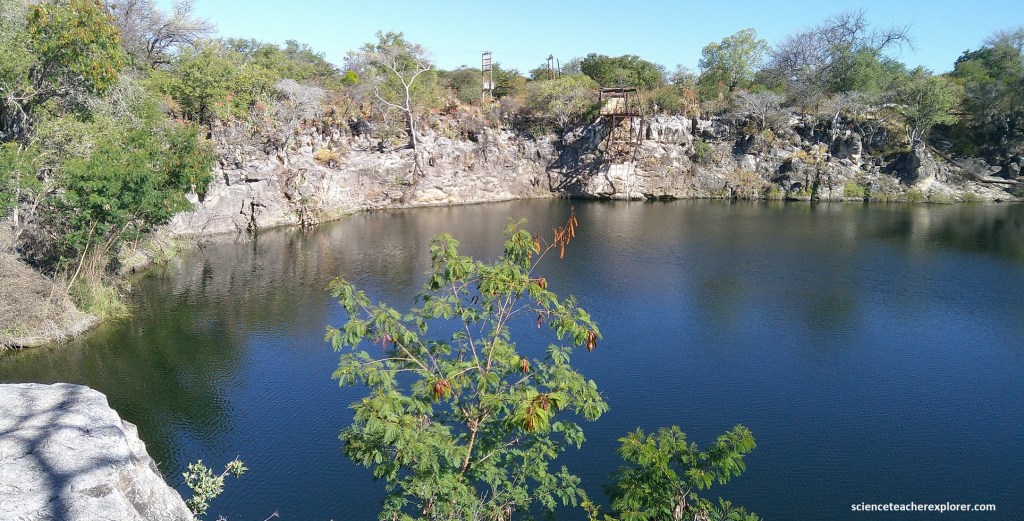 Pictured above, Otjikoto Lake is a perfectly circular lake that has a diameter of 102m with a surface of about 7,850m2. It’s depth is probably greater than 100m, and its volume approximately a million cubic meters of fresh water. It’s temperature remains steady a 220C near the surface and 180C at deeper levels. I couldn’t help notice that is was full of an endemic , mouth-brooding species of fish called Tilapia guinasana.