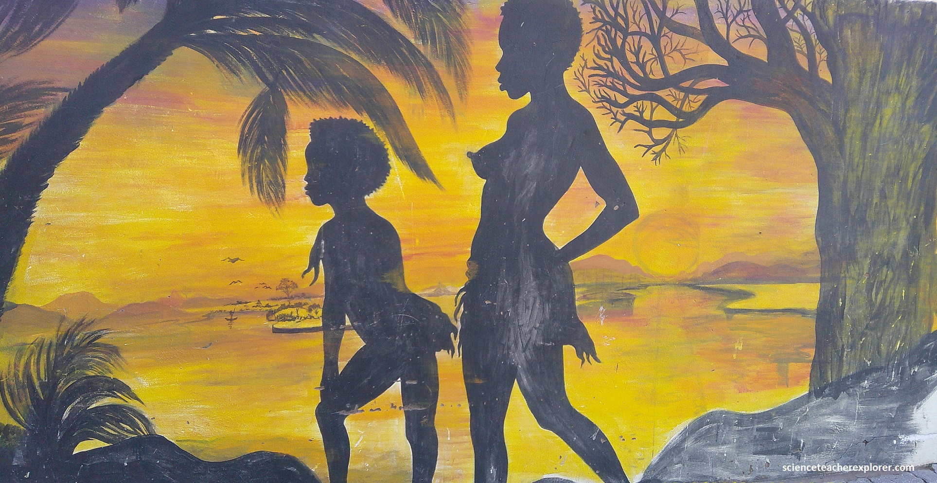 {Pictured above is from a local Herero artist that painted these images on the side of the building there}. When the Herero moved into the Otjikoto Lake area, they namedthe feature Otjikoto. It means “deep hole” in their language. The first Europeans to discover the lake were Briton Francis Galton and Swede Carl Johan Anderson in 1851. Upon spotting the lake, the two explorers immediately jumped in for a swim. The local Herero people could hardly believe what they were witnessing, (that these two white individuals could safely swim back to shore). The local Herero people believed that no-one would survive immersion of the lake’s mysterious waters.