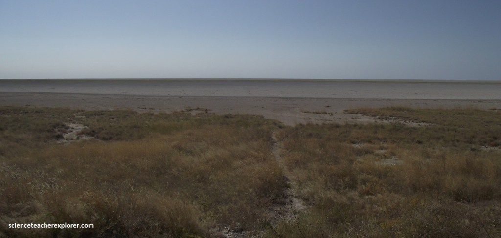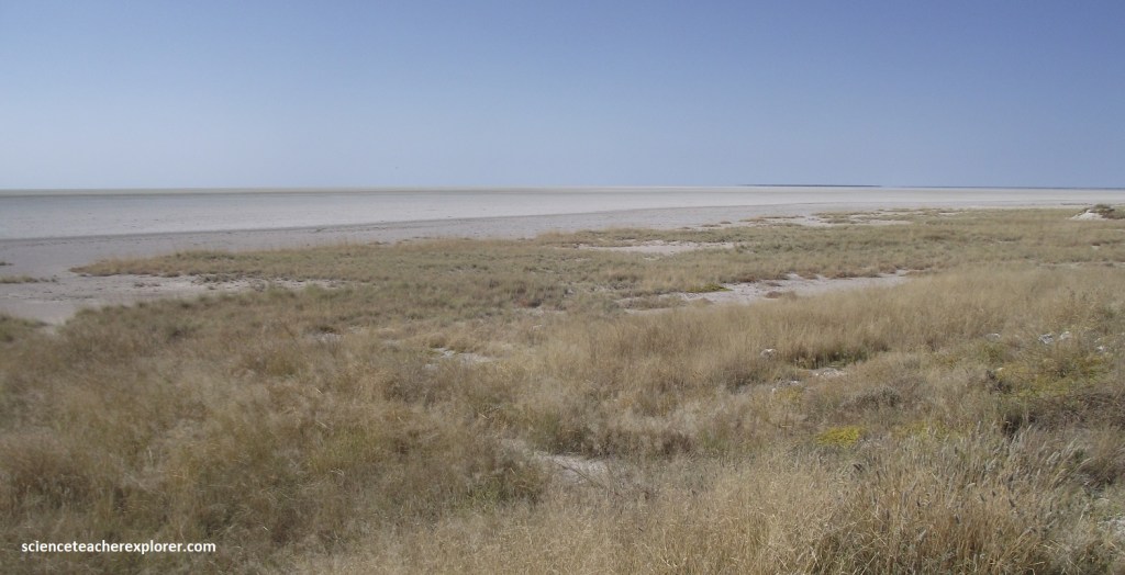 So to summarize, this continental uplift caused the major Kunene River to shift its path from flowing southeast into the ancient lake to flowing west into the Atlantic Ocean, cutting off the lake’s water supply and causing it to dry up and evaporate over time, leaving behind a saline pan. Wind erosion later deepened the depression and shaped the pan into its current form.
