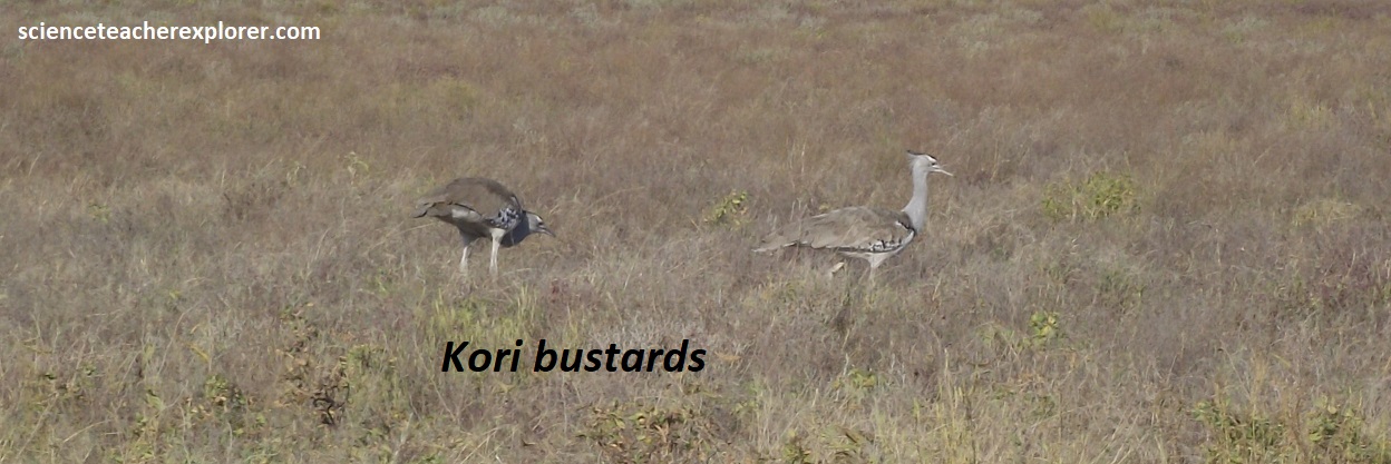 Pictured above, Etoscha is home to 340 bird species, about a third of which are migratory. The avian residents of the park make up an eclectic mix that ranges from ostriches to the colorful lilac-breasted roller and Kori bustard.