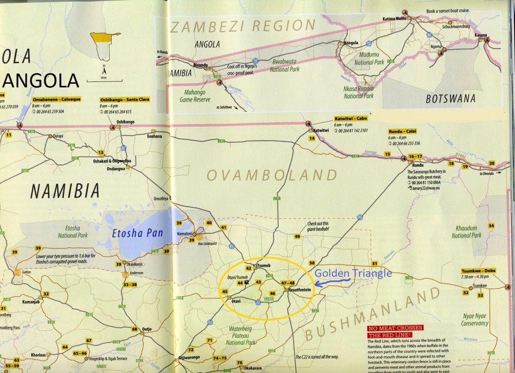 My primary destination to explore and trek was the Otavi Mountainland. It lies between the small towns of Otavi, Tsumeb and Grootfontein, and is considered the ‘Golden Triangle’ with it’s abundant, fresh, clear groundwater.