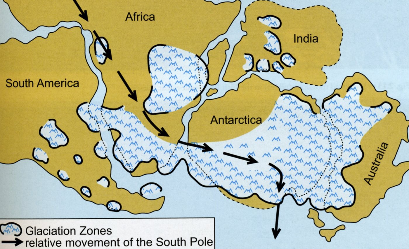 Additionally, the Gondwana ice age was a major geological force that shaped Etoscha National Park’s current landscape. About 300 million years ago, glaciers from the ice age carved features like riverbeds and the landforms that now contribute to Etoscha’s distinctive dry, flat pans. {Note the images below depicts the Gonwana ice ages 300 million years ago. The images were taken from, (“Namibia-Fascination of Geology, A Travel Handbook” Grunert 2013)}.