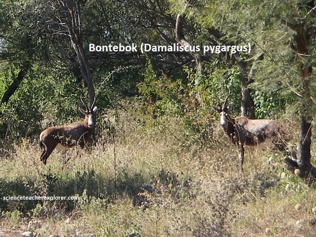 On our way back from Etoscha National Park, we saw these two Bonteboks in the bush near Otavi. Interesting story about these antelopes. The Bontebok were once extensively killed as pests, and by the early 20th century were reduced to a wild population of just 17 individuals. The species was saved from certain extinction when a Dutch farmer named Alexander van der Bijl corralled the remaining individuals into a fence, which they were unable to jump out of. In 1931, this herd of 17 was transferred to the Bontebok National Park, South Africa, which was established for the explicit purpose of conservation of the species. By the time the park was relocated to better suit the needs of the bontebok in 1961, the herd had grown to 61 members. Today, their population is estimated to range from 2,500 to 3,000, all descendants of the original herd of 17 members. Here, we found two in the wilds of Namibia.