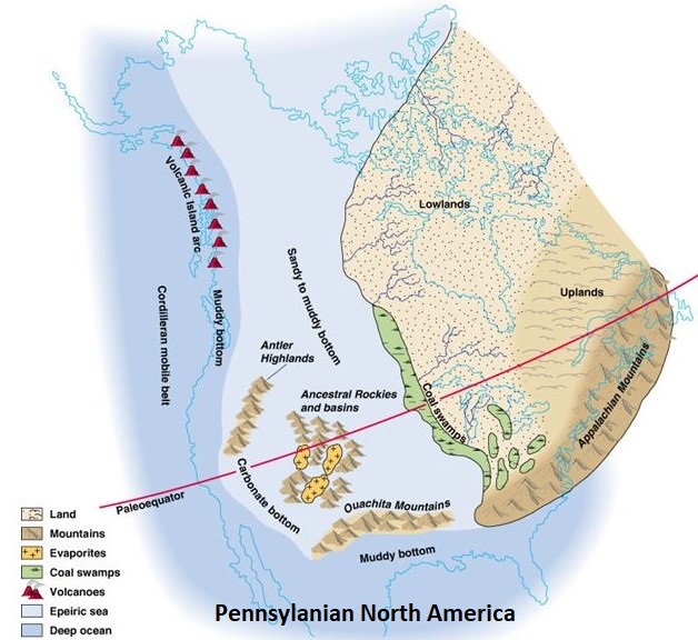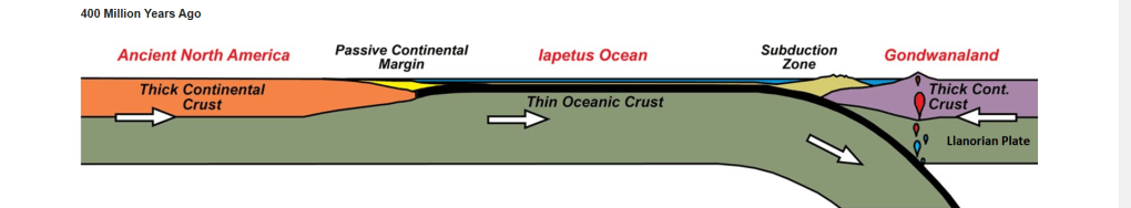 Beginning about 400 million years ago in Middle Mississippian time, the Llanorian Plate, which consisted of South America and Africa, (Gondwanaland), approached the North American Plate from the south and east.