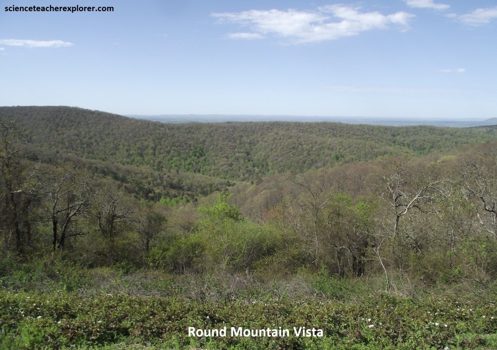 The name Talimena drive comes from the towns nearest each end of the 87 km drive. On the Oklahoma side is Talihina, Oklahoma and on the Arkansas side is Mena. The Ouachita National Forest dedicated the drive as a scenic byway during a ceremony at the Arkansas-Oklahoma State Line on June 20, 1989. The Talimena Scenic Drive leads visitors along the crest of Rich Mountain and Winding Stair Mountain in the Ouachita ranges of Western Arkansas and Eastern Oklahoma. There are breathtaking views with many vistas. My first vista that I stopped at was Rou)nd Mountain Vista, (pictured below).