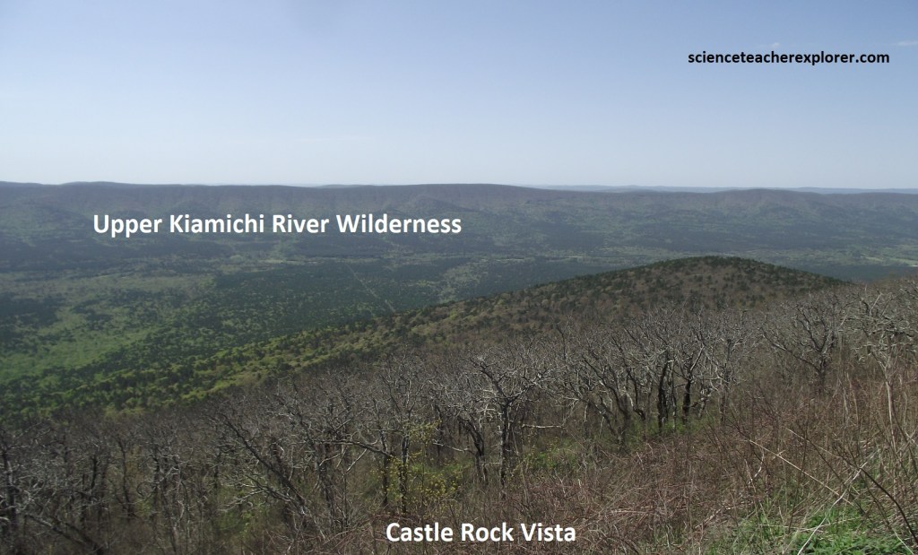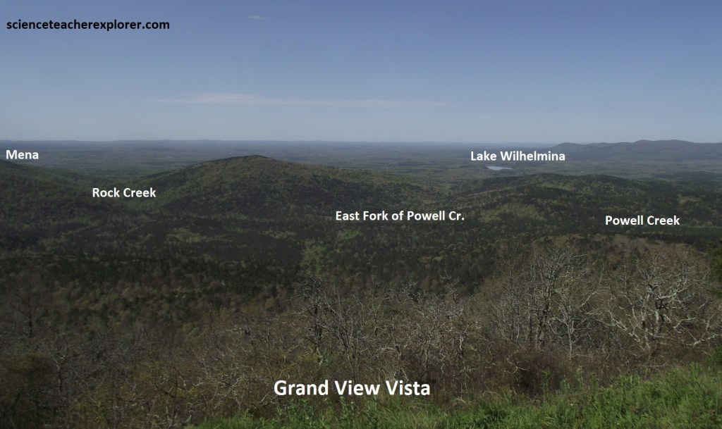 I began my trip on highway AR-88 from Mena, Arkansas. The Talimena Scenic Byway is one of the first highways to be designated a scenic byway by the U.S. Forest Service, (the Oachita National Forest). It provides beautiful view of the surrounding valleys and ridges that make up the Ouachita Mountains, (imaged below).