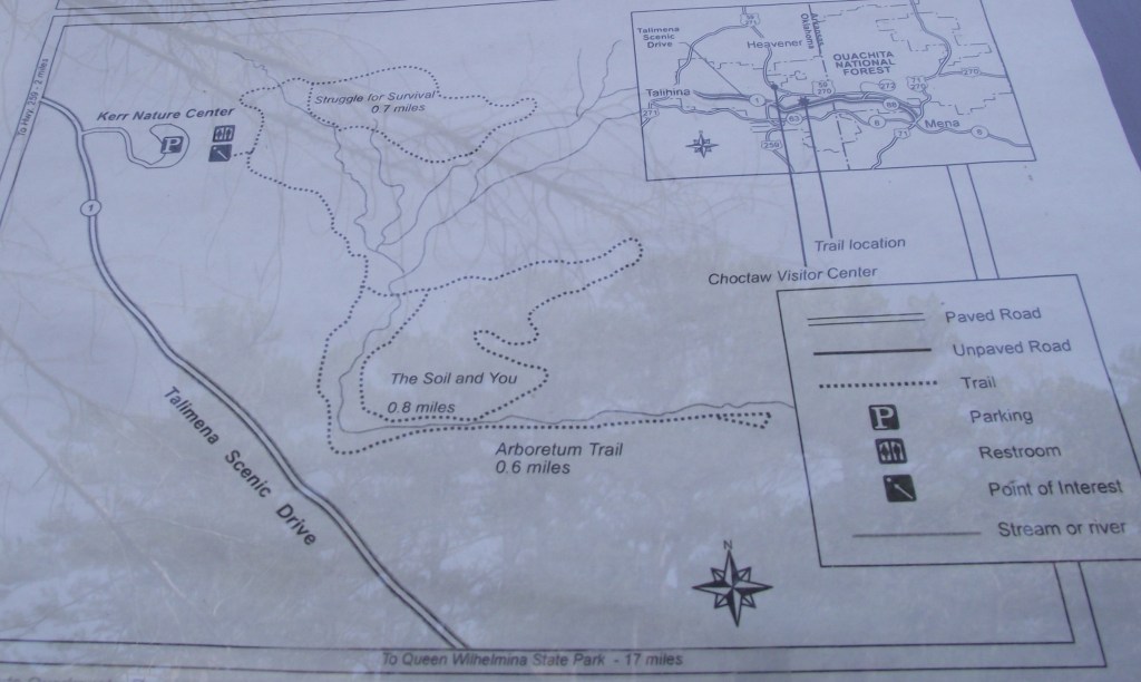 For and informative introduction to the many varieties of trees, shrubs, and flowers that are found in the Ouachita Mountain region, I visited the Robert S. Kerr Arboretum and Nature Center, where 3 unmarked trails focused on soil formation, vegetation, and ecology.