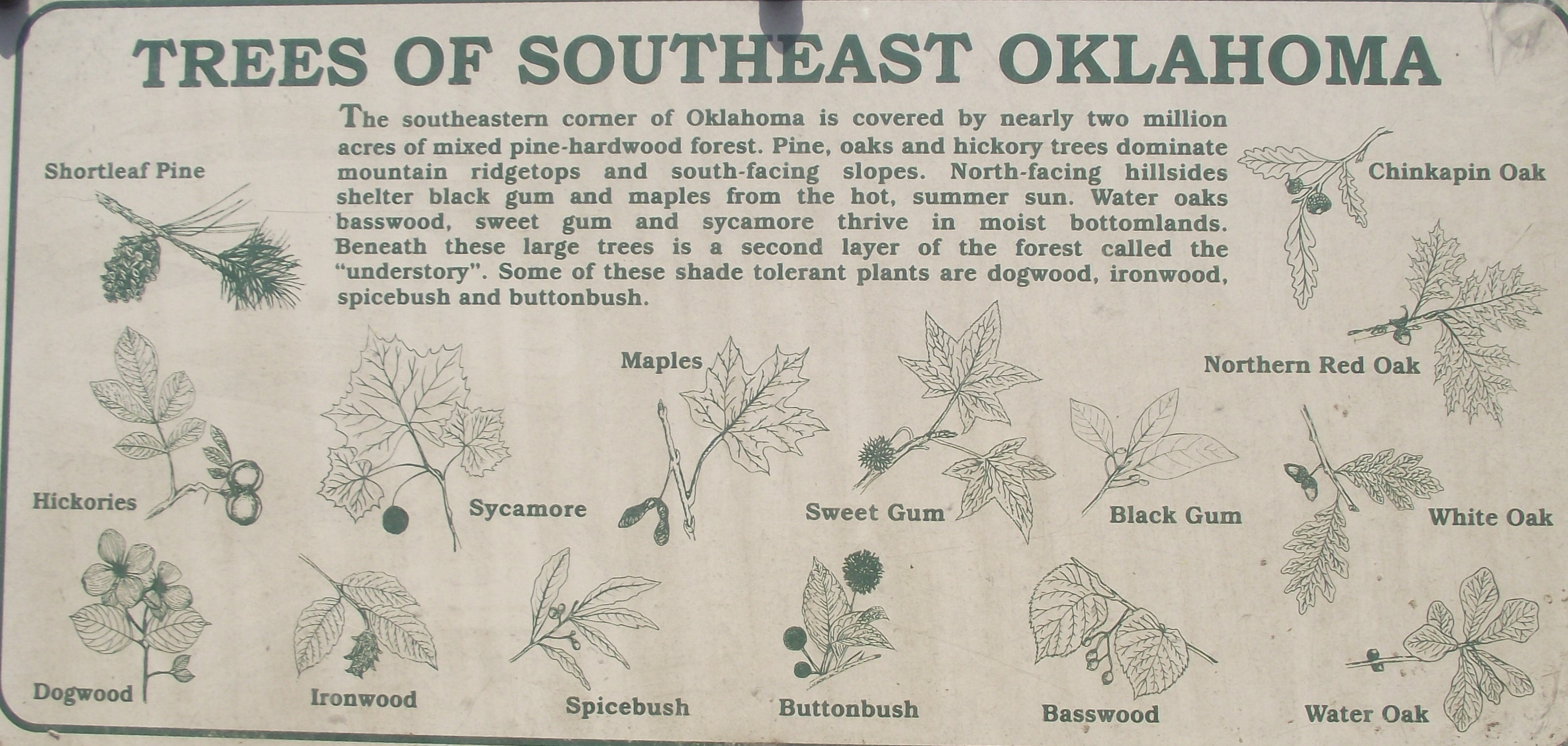 Sandy soil underlying the Ouachitas favors the growth of pines, making this area one of the country’s leading sources of timber. While shortleaf pine is common, hardwoods, (including oak, maple, and elm), are also present in these parts, providing splashes of red-orange that, in autumn, blaze against the emerald ever-greens. In early spring pink blossom of redbud, white dogwood blooms, and pale yellow buckeye flowers create lacy swirls of color in the woods. {Below are photos I took from the Robert S. Kerr Arboretum}