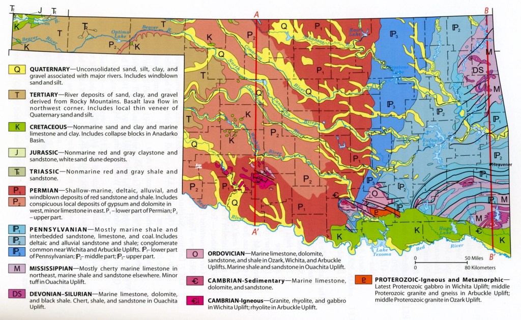 From the newly formed Ouachita Mountains, rivers flowed north and northwest across the filled Arkoma Basin and former Early Pennsylvanian shelf, depositing their loads of gravel and sand before emptying into a shallow sea at deltas in central Oklahoma and the Gulf Coastal Plain, (imaged below).