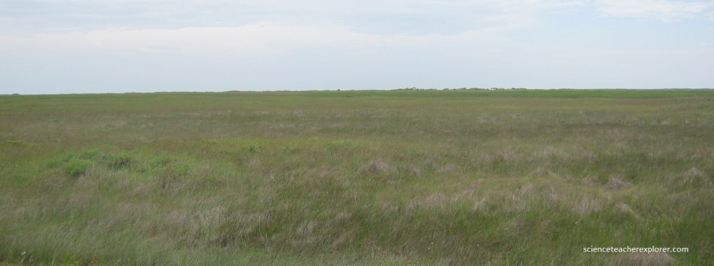 Pictured below, I’m standing on within the hummocky, grass-covered stabilized blowout dunes. In the distance remains an active blowout dune that remains barren because of wind and trampling of vegetation by visitors. The dominant southeasterly winds cause the blowout dunes to migrate lagoonward.