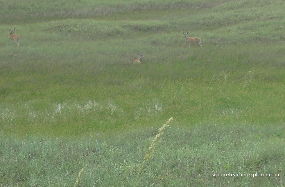 Pictured below, is a heard of deer, taking advantage of the brackish water found within the wash-over ponds and marshes. All wash-overs erode during recent hurricanes, and those most likely to be reactivated during the next large storm, occur where the dune ridge is low and segmented.