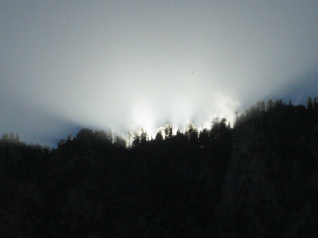 As the video below indicates, the tram shallows on it’s descent and below that, a darker metamorphic rock is abundant. These older rocks are of uncertain age. That they were once sedimentary rocks is very likely, but metamorphism has obliterated the fossil record. It is thought the rocks are probably of early Paleozoic time, variously 250 to as much as 600 million years old. The metamorphic series is massively banded, gray in color where fresh but mahogany or rust colored where weathered. Well-developed foliation planes of interbedded and contorted layers of schist and white recrystallized limestone, often injected by bands of granitic rock are common. The banded structure of these old rocks is very striking to the eye. The layers are oriented north-south, and dip or tilt to the east about 35 degrees. The large flat rock boulders have been weathered loose along their banding planes, and are seen as gigantic scales or plates on the mountain side . Viewed from the north end of the city, the profile of the mountain face in outline is a remarkable straight-edge inclined of 35 degrees. Watch the video below to get an excellent view of these formations.