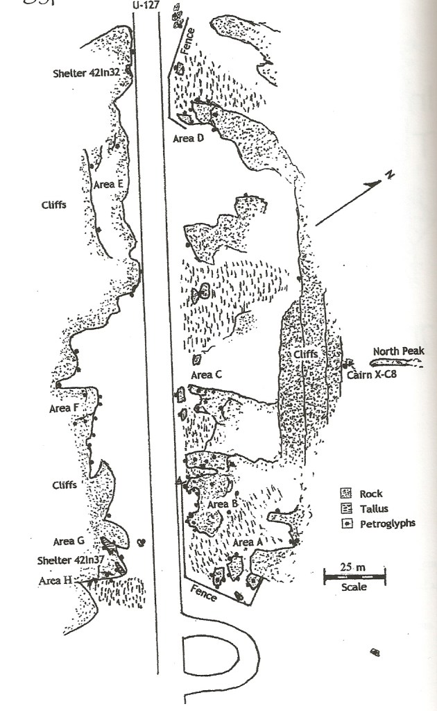 The “Big Cave” shelter with its many petroglyphs functioned as a ritual shrine spanning millennia within the extensive Narrows petroglyph archive. This discovery came to light during the ten year archeological project (1993-2003) involving field survey, excavation, petroglyph recording, archaeo-astronomy , and comparative ethnography (traditions) research.