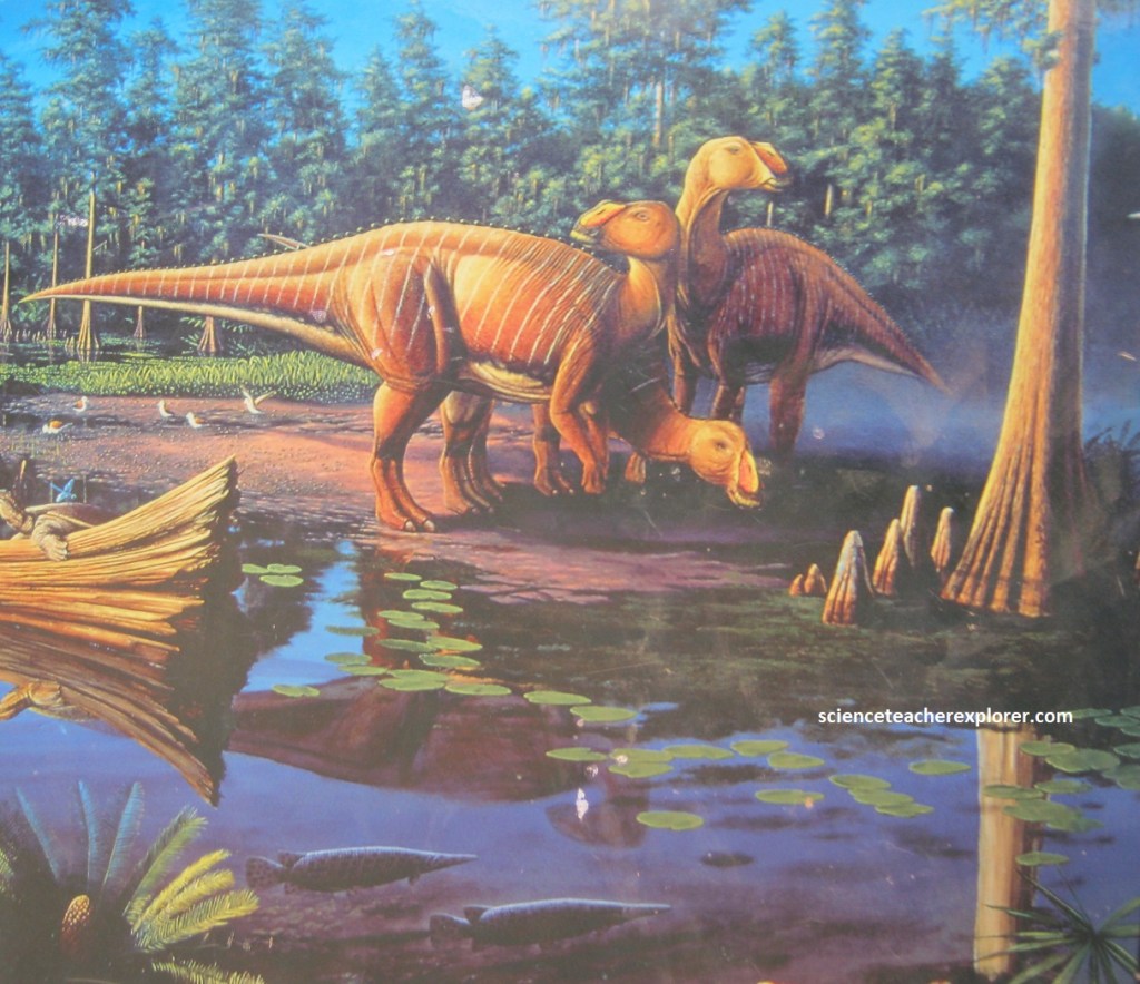 Hadrosaurs were the most plentiful dinosaur species in North America of their time, spending most of their days eating and grazing. Most weighed a few tons and were 3-14m long. They had a thousand small teeth for grinding plant life and a long tail to help them balance. Like other plant-eaters, hadrosaurs were hunted by the meat-eaters and many have been easy targets because they moved slowly. Although they typically grazed on for legs, Paleontologists believe they were capable of clumsily running away from predators on two feet.