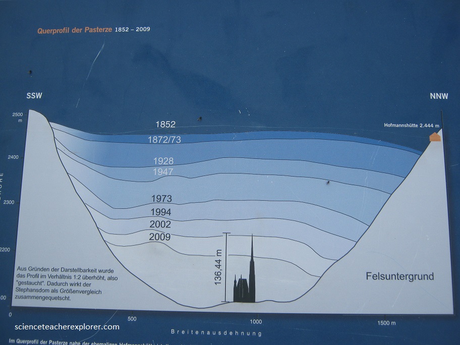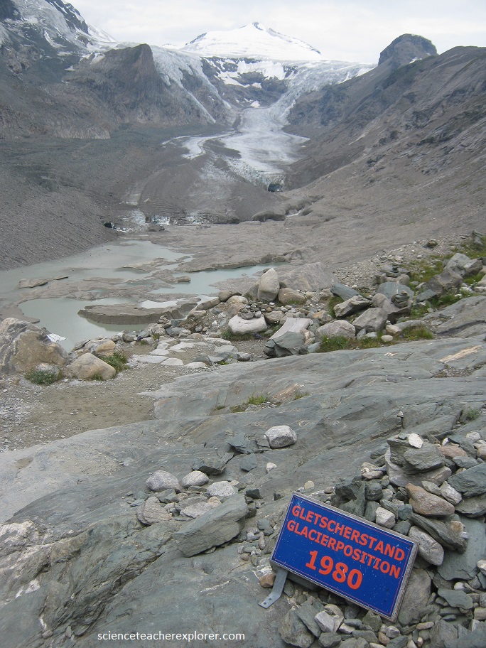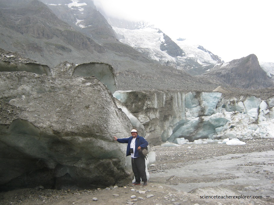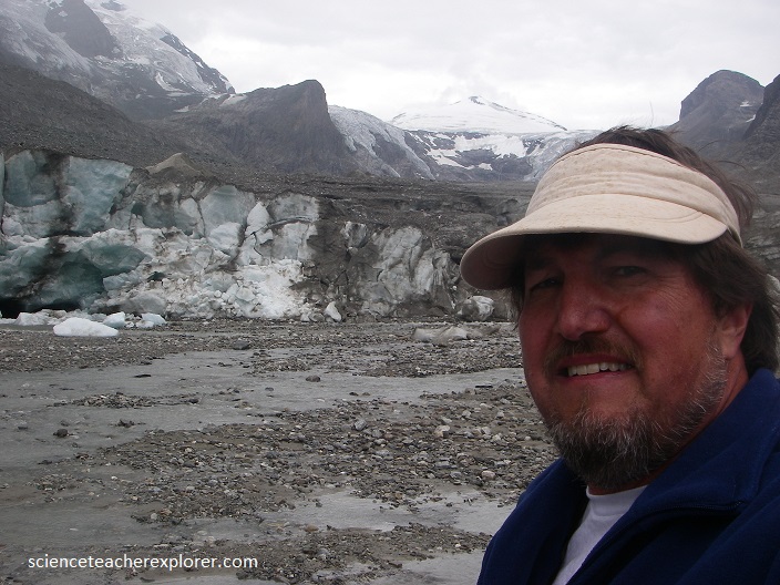 After hiking several miles, I’m standing next at the front of the Pasterze Glacier pictured below at 2017.