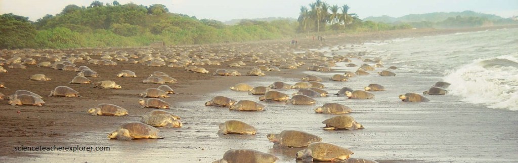 Triggered by the last quarter of the moon each month, hundreds of thousands of Olive Ridley-Turtles emerge from the Pacific Ocean and deposit their eggs on the beach at Ostional. This phenomenon is called the Arribada, meaning “the arrival.” The peak of activity is during the wet season, between July and December, with the biggest recorded emergence in November 1995 when 500,000 female turtles nested in a single Arribada.