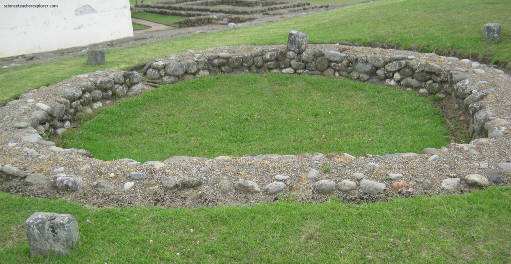 Pictured above, the “Reconstuccion del Akllawasi” is a hypothetical recreation of the Akllawasi, originally built with carved stones, pebbles in the foundations and thatched gabled roof. The roof structure was raised with chauarqueros that grow from the penco or American agave, (extremely light and tied with rope).