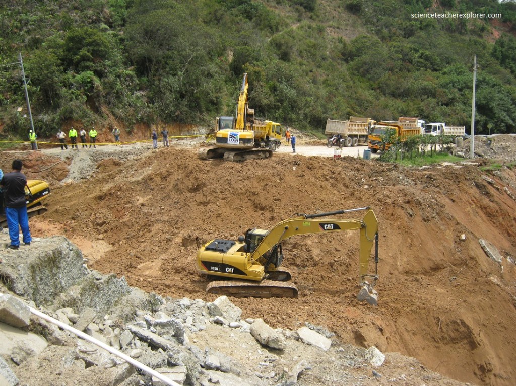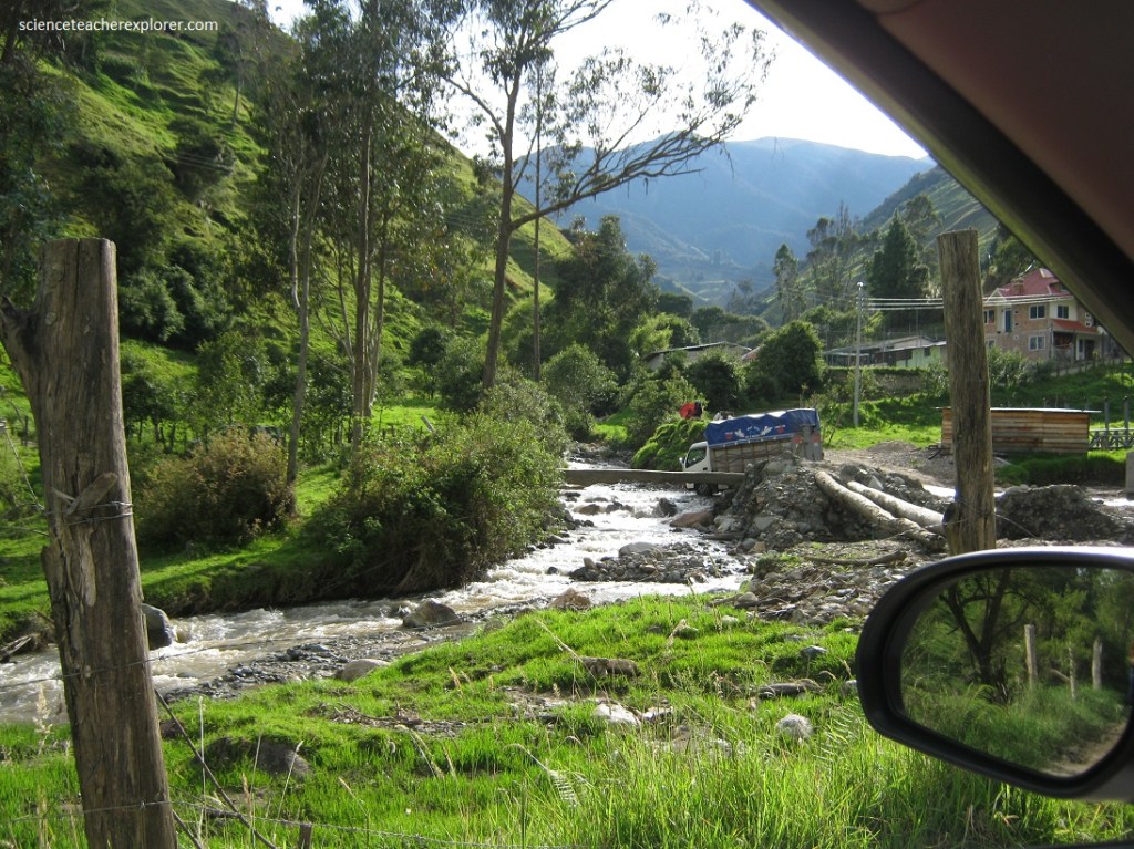 Since we were very motivated to explore the Podocarpus National Park south of Loja, we decided to take a 4 WD detour around the washout. Since this was the only way south of the washout, on the Pan-American Highway, many of the supply trucks took the same route. It was quite the adventure, (pictured below).