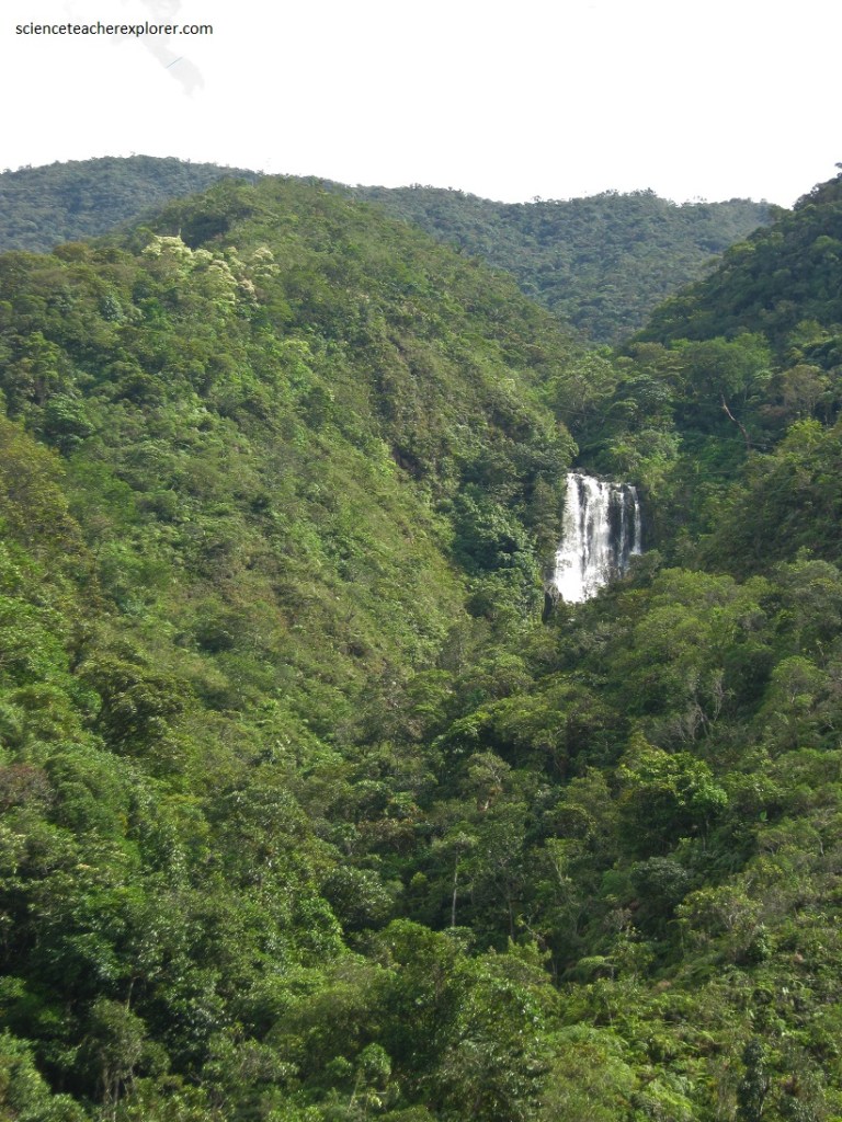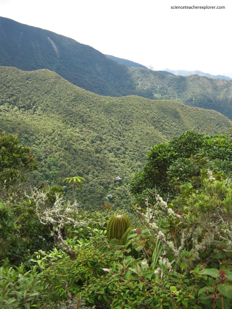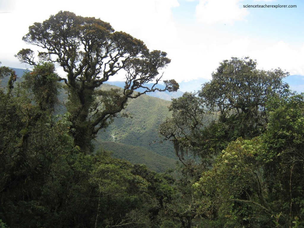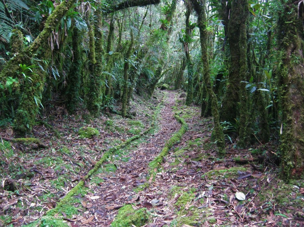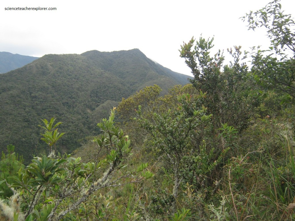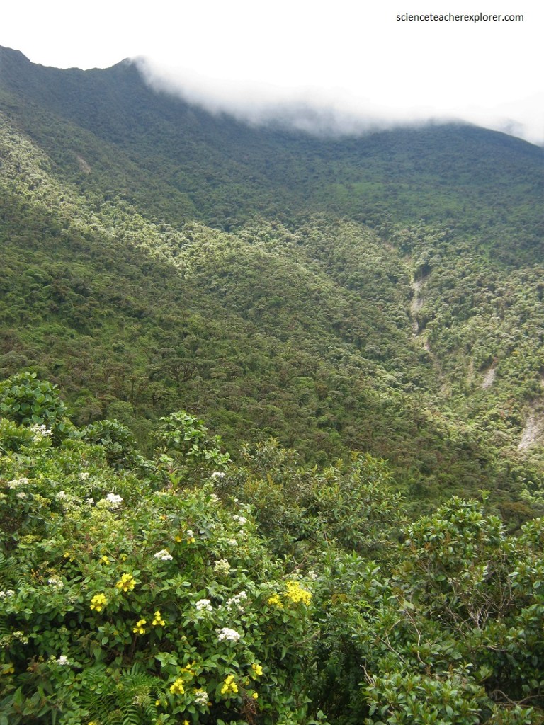 Pictured above, the elevation changes delivering a variety of vegetation habitats such as the montane rain forest in lower elevations and elfin forests in higher elevations.