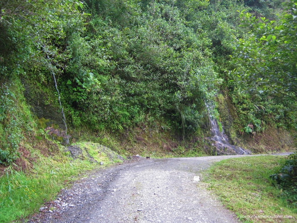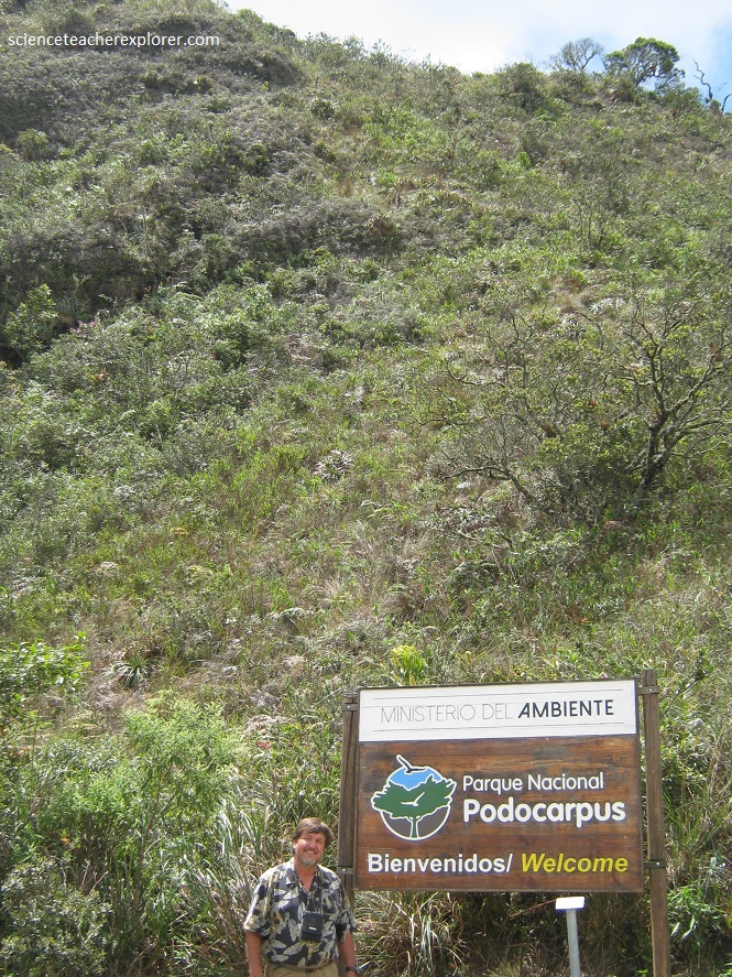 Once we bypassed the flash-flood zone, we continued onto Podocarpus National Park 14 km south of Loja and 23 km north of Vilcabamba. There we went through the gate at the Cajanuma Ranger station and continued onto a dirt road for another 8 km from the highway to a refuge. (pictured below).