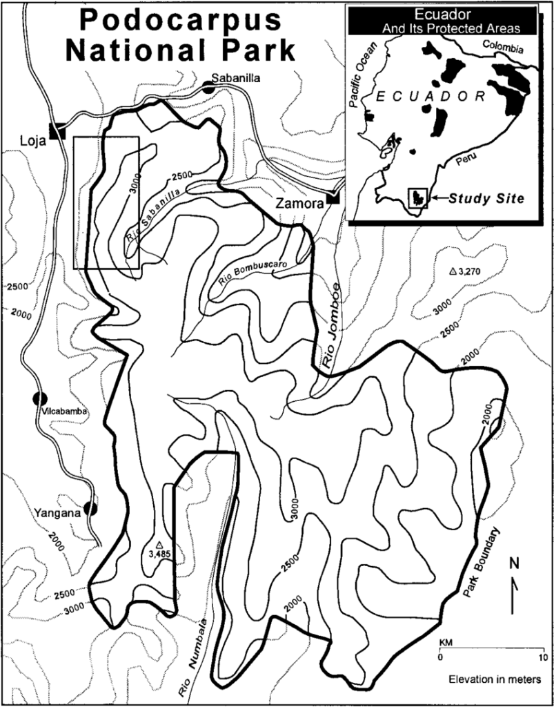 The Podocarpus National Park is categorized as a megadiverse zone and an area with a high level of endemic species because it is a meeting point between four ecological systems: Northern Andes, Southern Andes, Amazonian and Pacific.
