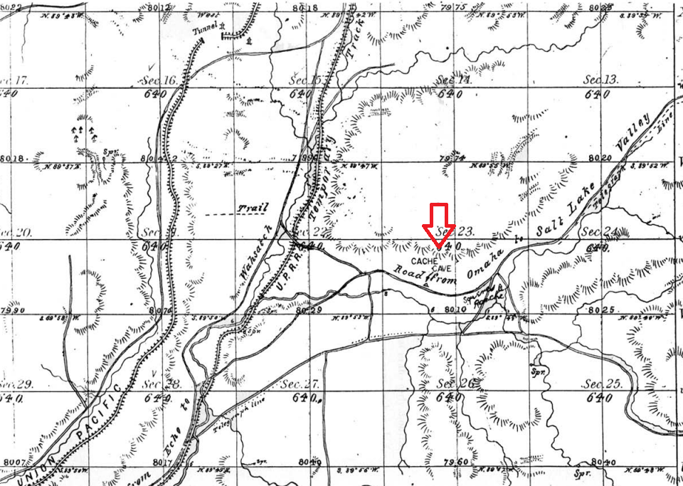 Pictured above, Cache Cave was another well-known landmark on the Pony Express & Overland Stage trail in Utah. It was also known as Redden’s Cave, having been discovered by Return Redden Jackson in 1847.