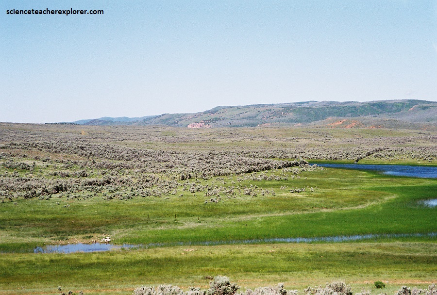 Pictured above, the descent from “Gravel Hill” was the steepest and most difficult on the trail. A famous explorer (Richard Burton) riding the stagecoach described “Gravel Hill” as a “descent that appears little removed from an angle of 35 degrees, and suggests the propriety of walking down”. A small stream called Musselman Creek runs near the foot of “Gravel Hill”. A blacksmith shop was established here to repair the many mishaps encountered on the descent. From “Gravel Hill” the trail continued to Muddy Creek, (pictured below).