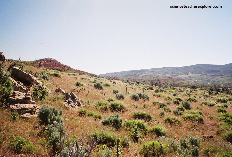 Pictured above, from Needle Rocks Station the trail winds west over the Yellow Creek Hill to the southwest. At the base of this hill on the west side was a large spring named Emigration Springs.