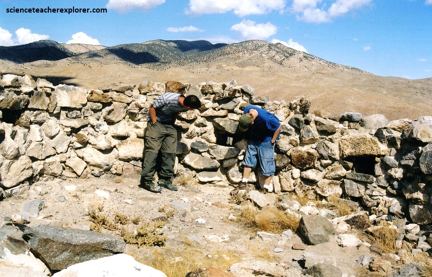 Constructed in 1863, Round Station replaced Burn’t Station to serve the Overland Stage. It was located west of the Pony Express/Overland Stage Road, 19.3 km northwest of Callao at the mouth of Overland Canyon. Pictured above, the remnants of a round rock structure included gun-ports and had been stabilized and enclosed by a chain link fence. Following the destruction by Paiute Native Americans of the station in Overland Canyon, a more strategically located and defensible station was constructed about 3.2 km down the hill at the mouth of Overland Canyon. Attacks by Native American tribes angry about the intrusion of the stages on their lands interfered with regular service and resulted in considerable delays and loss of mail and other cargo (not to mention a few lives).
