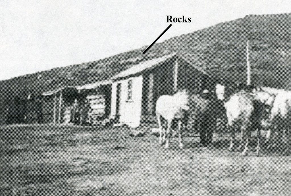 Pictured above, during the 1870s, Horace Rockwell (Porter’s Brother) and his French wife “Libby” occupied what had earlier been a Pony Express station, on the west side of the pass, 1.2 km in descent. In 2002, there was a hole left to where the log cabin once stood. Mr. Jackson was the Pony Express keeper in the 1860s. However, the station was abandoned during the Paiute War with the Pony Express Company.