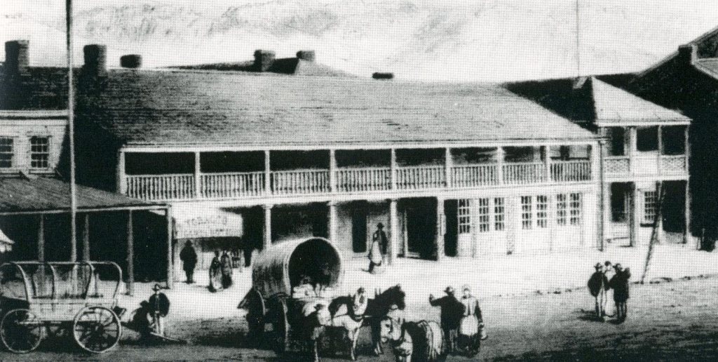 Imaged above, Pony Express mail was probably handled at the express office across the street, the “Salt Lake House provided accommodations for Pony Express riders and Overland Stage customers. The building was found on 143 South Main in Salt Lake City, Utah. There were no interpretive signs found there about the original structures in 2002.