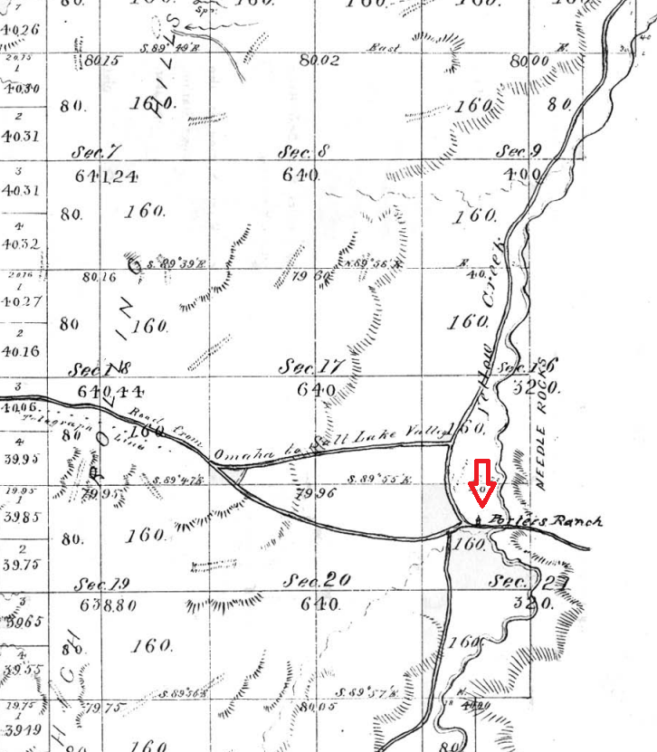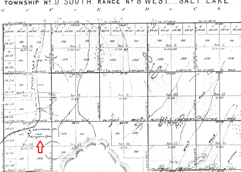 Pictured above, the eleventh contract station in Utah was “Joe’s Dugout”. Also known as Dugout, Joe Dorton’s and Seven Mile, it was located on the pass between Utah Valley and Cedar Valley in northern Utah County. The old photo above shows the old well site that was dug to get water. The attempt failed.