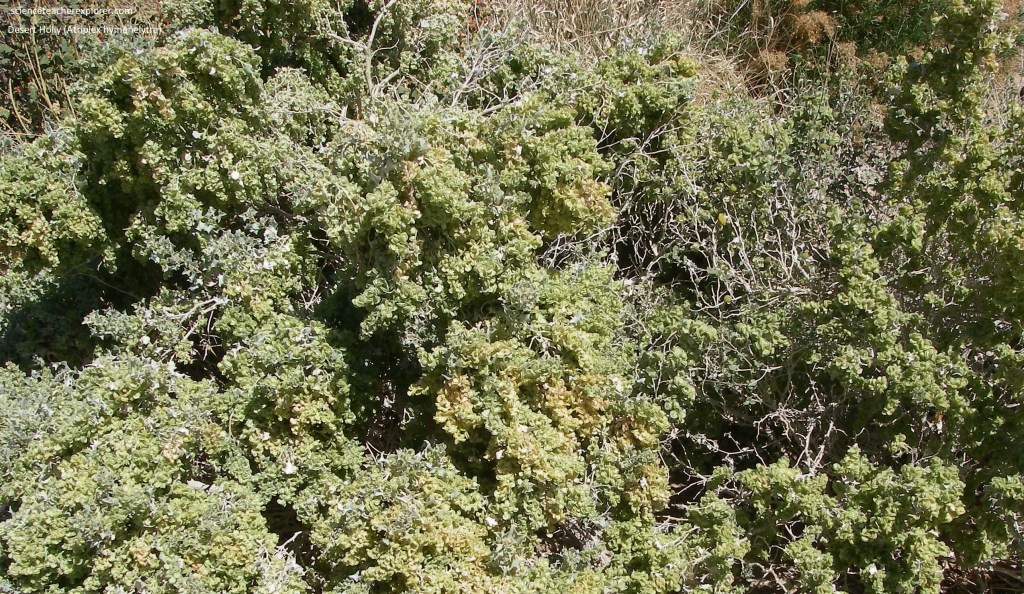 Pictured above, the Desert Holly is a silvery-whitish-gray shrub in the family Amaranthaceae, native to deserts of the southwestern United States. It is the most drought tolerant saltbush in North America. It can tolerate the hottest and driest sites in Death Valley, and remains active most of the year.