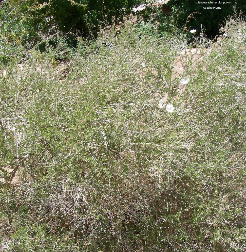 Pictured above, Apache Plume is native to the southwestern United States and northern Mexico, where it is found in arid habitats such as desert woodlands and scrub. Beginning in late spring and continuing through summer the plant blooms with single white flowers that set fluffy pink seed heads.