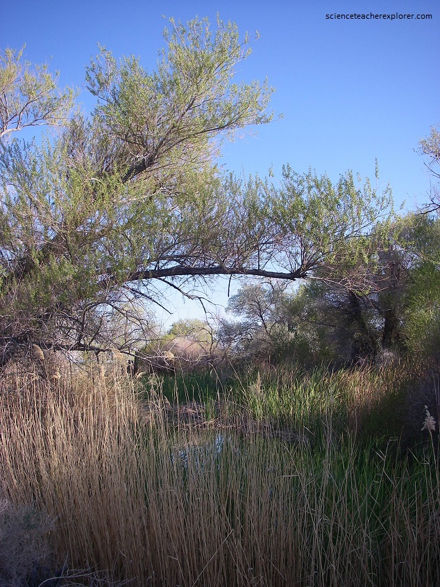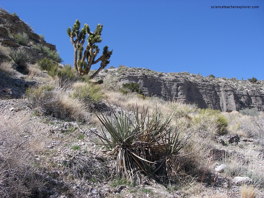 Between about 15,000 and 9,000 years ago, Tule Springs alternated between stream and marsh environments. Springs like Tule Springs provided water for a wide variety of native plants. Along he hiking trails within the Floyd Lamb State park are signs with the name of various planted trees and shrubs. Pictured below are some of the plants seen here: