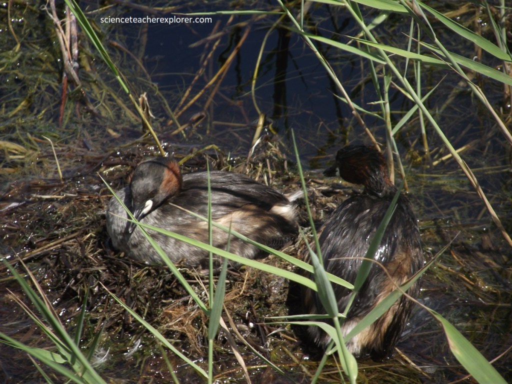 Pictured above, the Little Grebe Tachybaptus ruficollis is the smallest of the grebes and the commonest. They are small enough to be overlooked, especially as they spend much time under water. These were brightly colored and the rufous neck & chest contrasts with the black crown and nape.