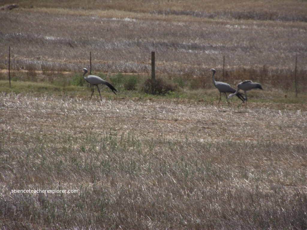 Imaged above, our last destination for exploration of the Southern Cape was Cape Agulhas. It was 340 km via. highways N2 and R319. Picture below, we caught a flock of Blue Cranes Anthropoide paradisea in the fields on R319. These are actually South Africa’s national bird. These beautiful birds were pale blue-gray in color that became darker on the upper head, neck and nape. From the crown to the lores, the plumage was distinctly lighter, sometimes whitish. The long wingtip feathers trailed to the ground. They seemed to have a relatively large head and a proportionately thin neck.