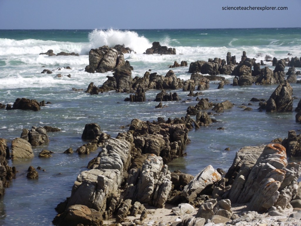 “Agulhas is the Portuguese word for “needles”, (it is likely that the cape was named after these rocky outcrops. All of these rocks are of the Table Mountain Group quartzite.